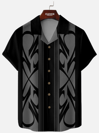 Ignite classic hot rod style with this bold pinstripe design featuring traditional automotive panel styling and retro camp collar construction. This striking tribute captures the essence of American car culture with custom flame graphics and classic pinstripe detailing that celebrates the timeless appeal of speed shop aesthetics and vintage hot rod heritage.