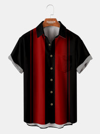 Classic vertical stripe bowling shirt featuring bold color panels separated by subtle racing pinstripes. This retro-inspired design draws from 1950s leisurewear with its clean lines and distinctive color blocking. Perfect for casual outings where timeless style meets comfortable everyday wear.
