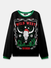 Yeehaw and meow-ry Christmas! This festive sweater stars a cowboy cat tipping its hat with a jingle bell collar and a “Meowdy” greeting across the front. With western flair and classic holiday knit patterns, it’s purr-fect for cat lovers and country fans alike.