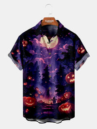 Tall Men's Pumpkin Forest Halloween Night Short Sleeve Shirt