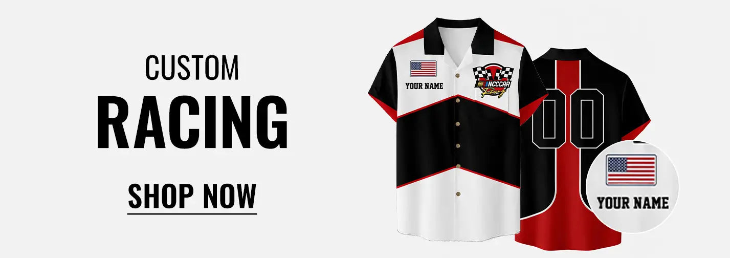 Men's Custom Race Car American Flag Short Sleeve Shirt