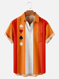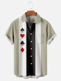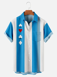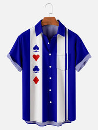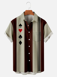 Tall Men's Card Suits Stripe Bowling Short Sleeve Shirt