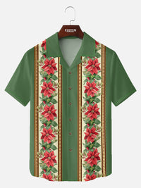 Men's Poinsettia Garland Christmas Short Sleeve Shirt