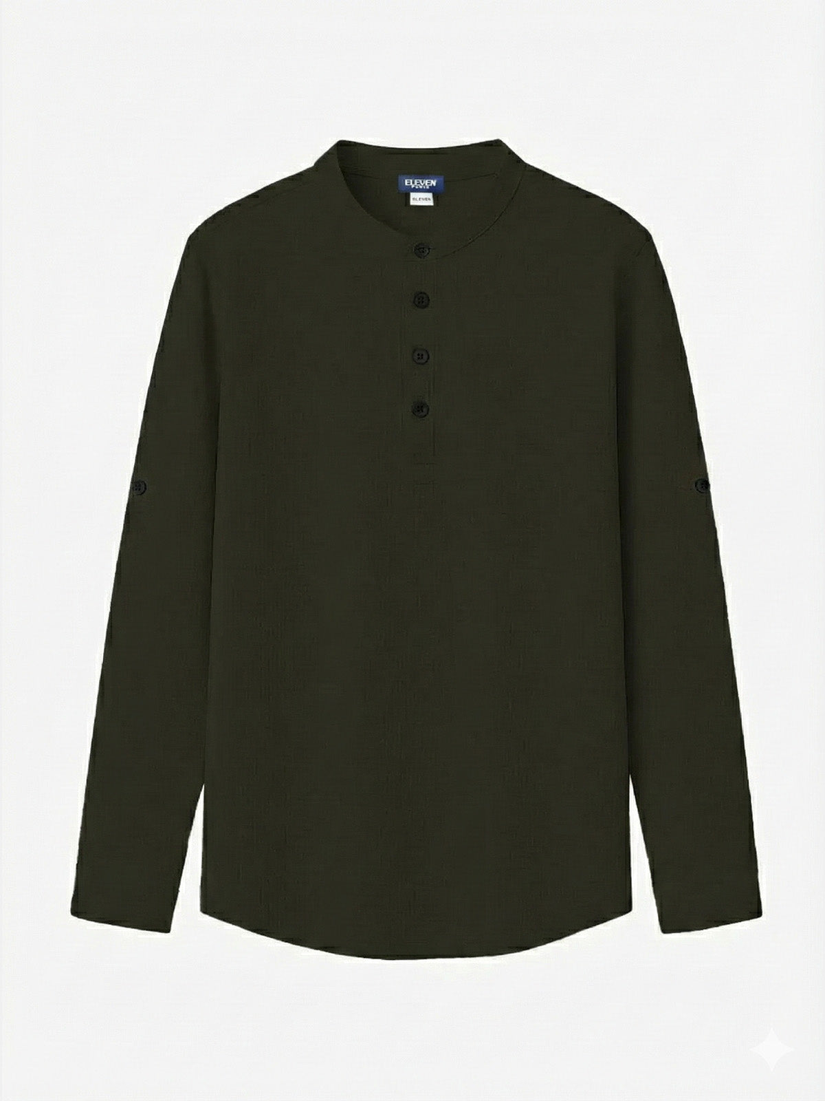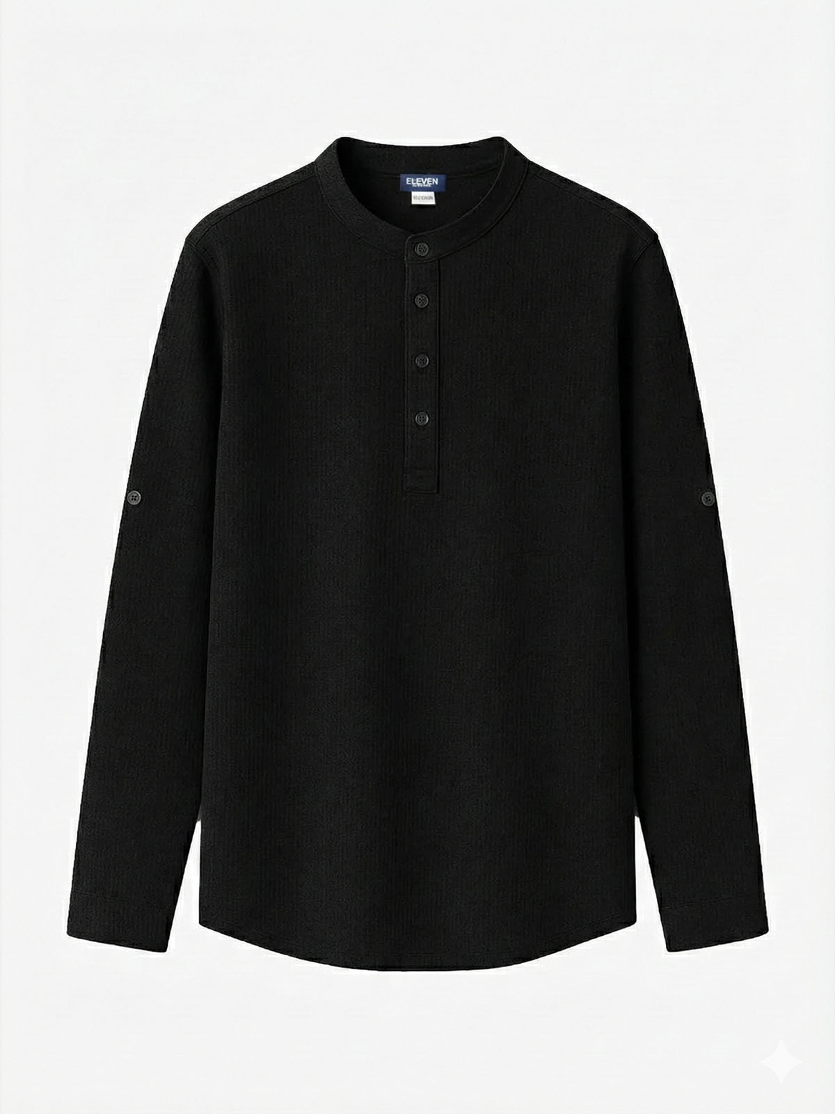 Men's Waffle Knit Henley Long Sleeve Shirt