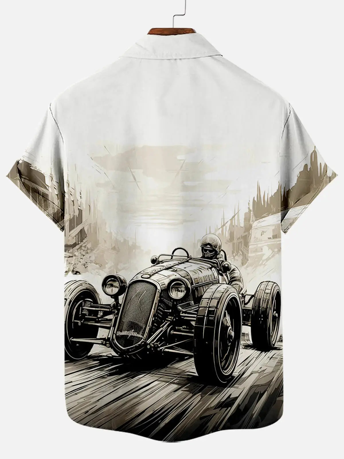 Rev up your wardrobe with our vintage race car shirt featuring dramatic hand-sketched automotive artwork. This striking black and white design captures the golden age of racing with artistic flair. Perfect for automotive enthusiasts wanting to showcase their passion with sophistication.