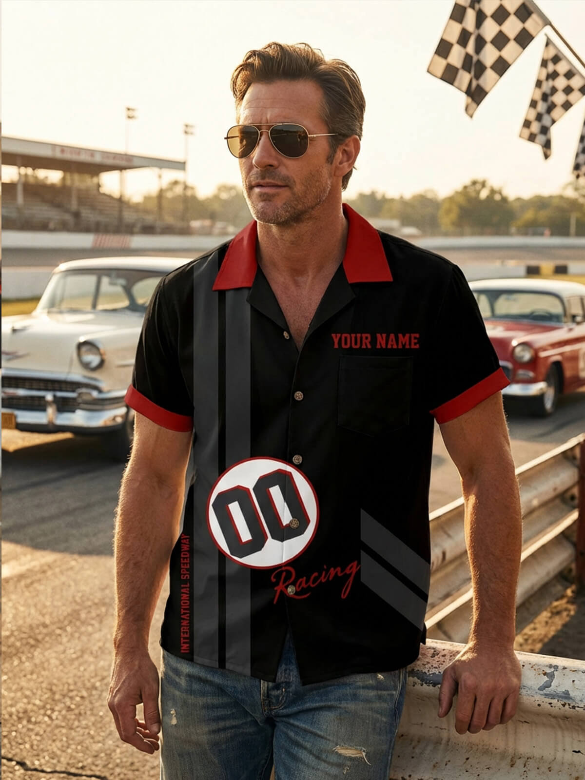 Tall Men's Custom Racing Stripes & Number Short Sleeve Shirt