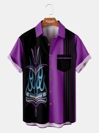 Bold meets balanced in our striking automotive stripe shirt featuring vibrant pinstriping and color-block design. This eye-catching shirt combines classic hot rod-inspired pinstripe artistry with modern color blocking for a unique statement piece. The asymmetrical design creates visual interest while the contrasting panels and intricate line work make this a standout choice for automotive enthusiasts and style-conscious men.