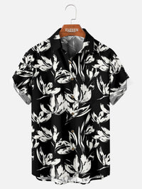 Tall Men's Monochrome Floral Pattern Short Sleeve Shirt