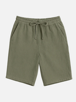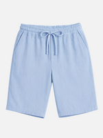 Unit price / perBreathable summer vacation shorts featuring a comfortable elastic waistband with a drawstring closure for personalized fit. Crafted from lightweight 95% linen and 5% polyester blend for exceptional airflow and natural temperature regulation. Available in versatile colorways including navy, white, olive, black, light blue, and khaki for effortless warm weather styling.