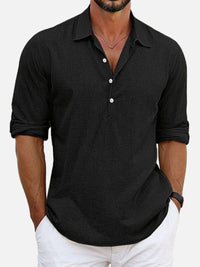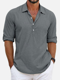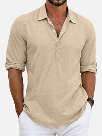 Men's Cotton Stand Collar Long Sleeve Popover Shirt