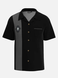 Men's Rockabilly Skull Button Down Halloween Short Sleeve Shirt