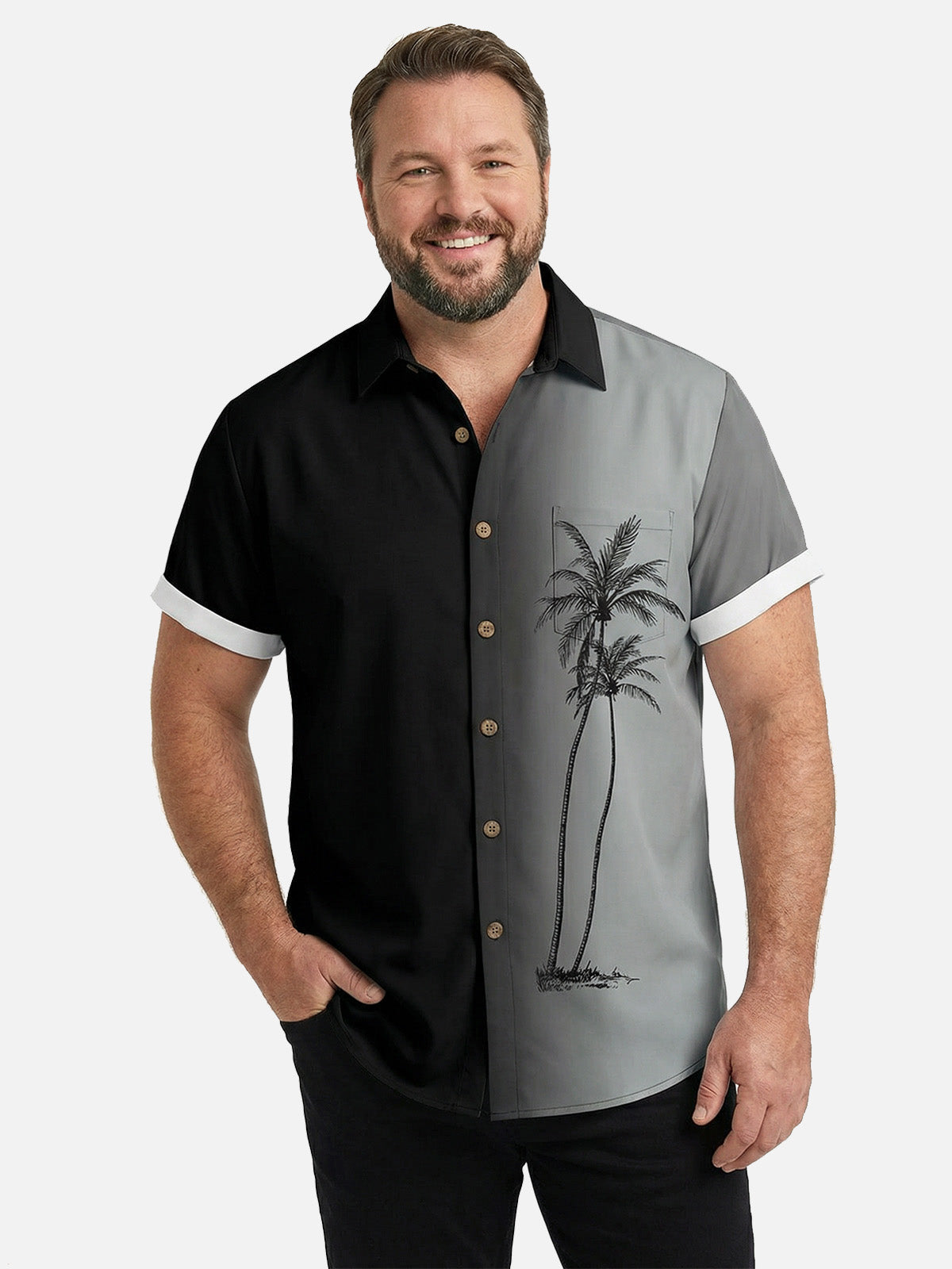 Tall Men's Gradient Palm Tree Hawaiian Short Sleeve Shirt
