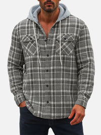Men's Hooded Plaid Flannel Long Sleeve Shirt Jacket
