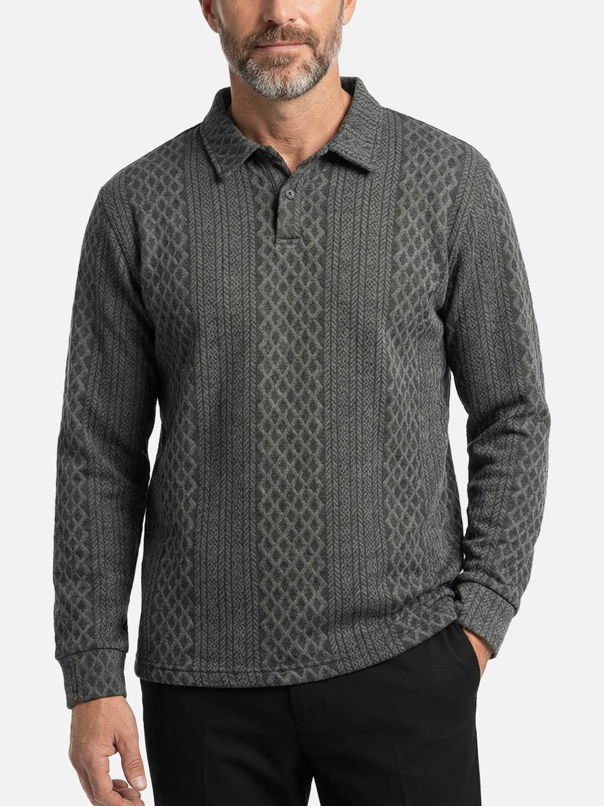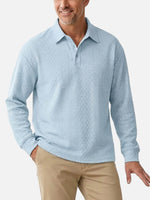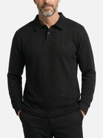 Men's Slim Fit Textured Cable Knit Long Sleeve Polo Shirt