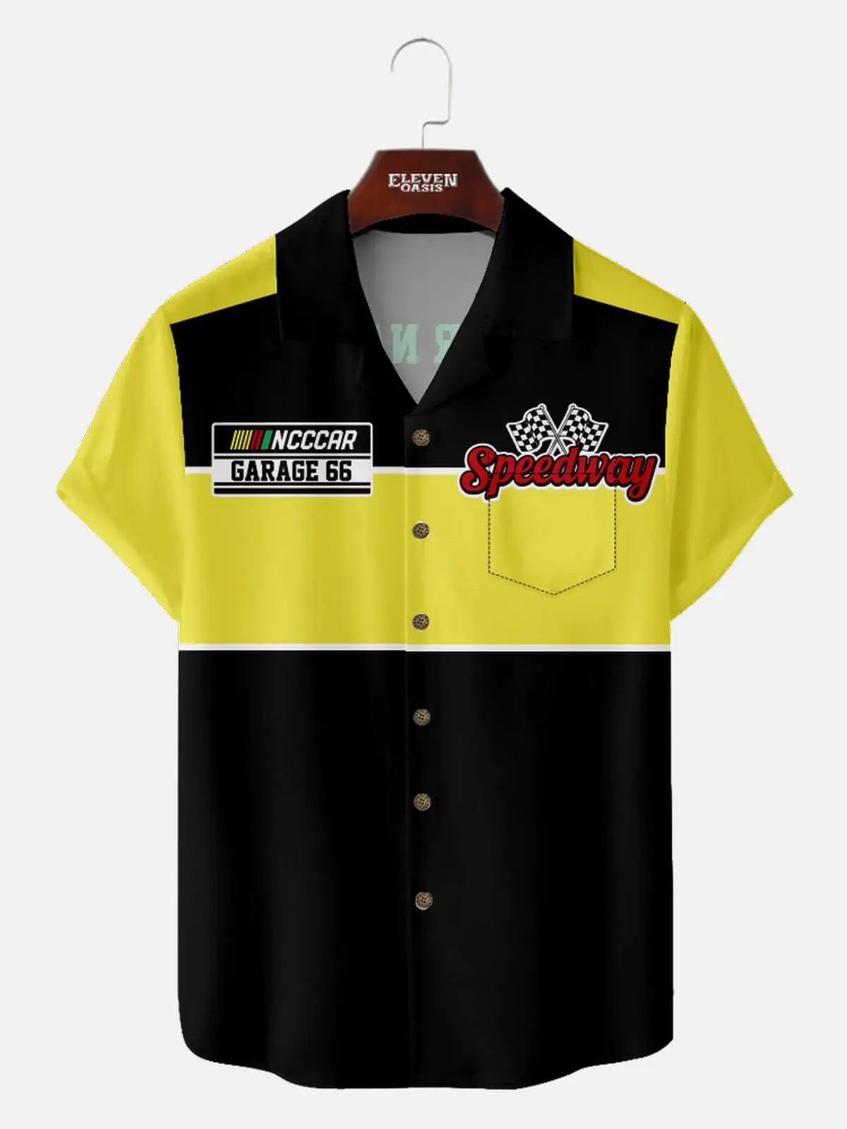 Channel your inner racer with this bold panel design featuring a dynamic split between two colors, highlighted with racing patches and the iconic "Speedway" logo. Customize it with your name, favorite racing number, even the shirt colors, to make it truly your own. Perfect for NASCAR fans who want to show off their love for the track.
