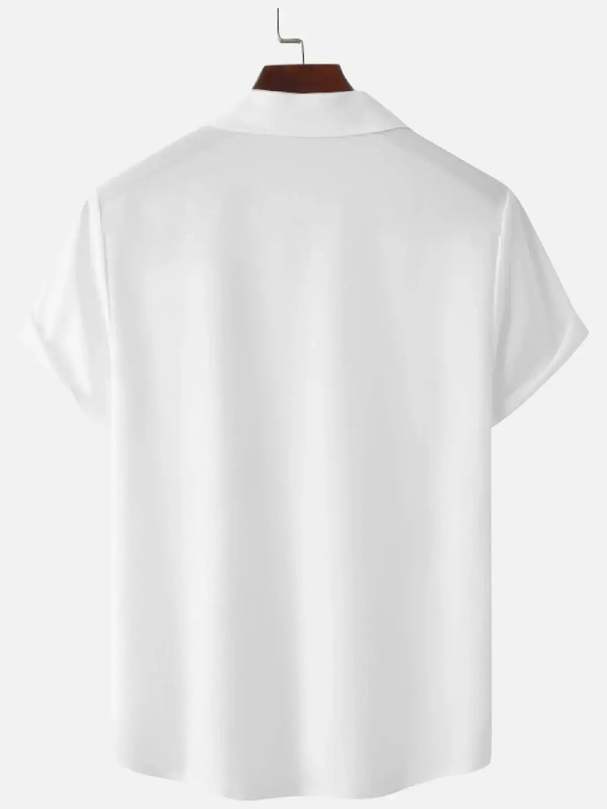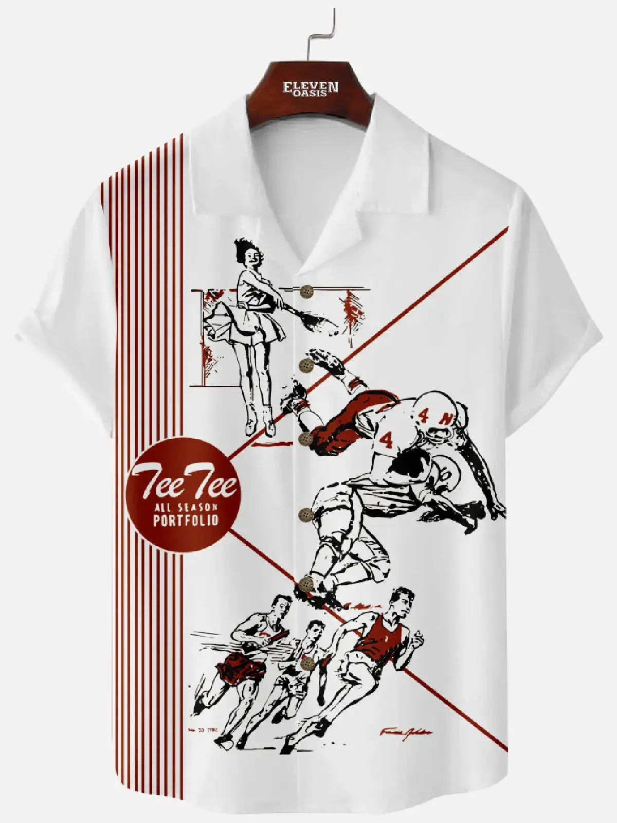 Tall Men's Pee Chee Nostalgia Panel Stripe Camp Collar Short Sleeve Shirt