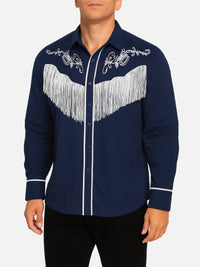Men's Western Fringe Embroidered Long Sleeve Shirt