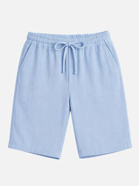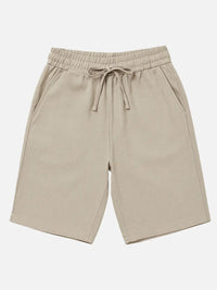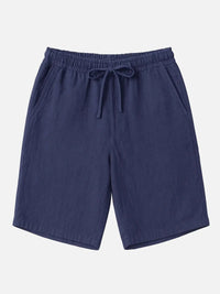 Breathable summer vacation shorts featuring a comfortable elastic waistband with a drawstring closure for personalized fit. Crafted from lightweight 95% linen and 5% polyester blend for exceptional airflow and natural temperature regulation. Available in versatile colorways including navy, white, olive, black, light blue, and khaki for effortless warm weather styling.