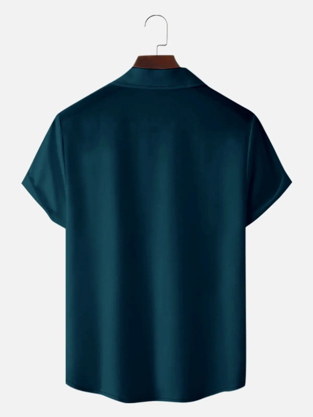 Men's Basic 50s Style Camp Collar Bowling Short Sleeve Shirt